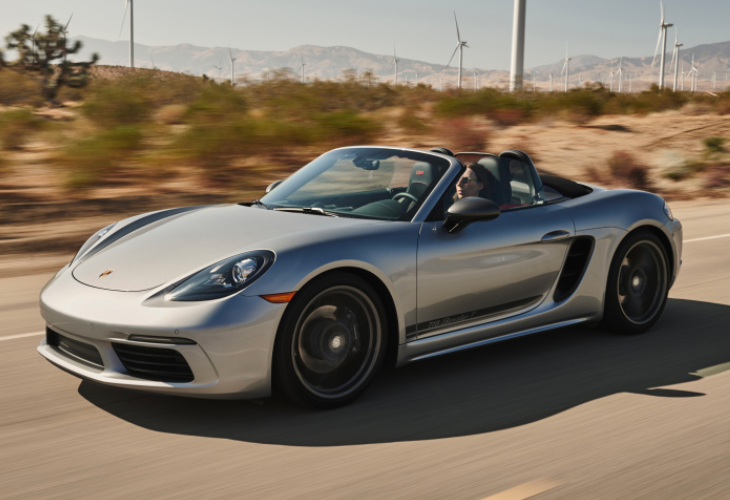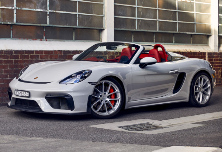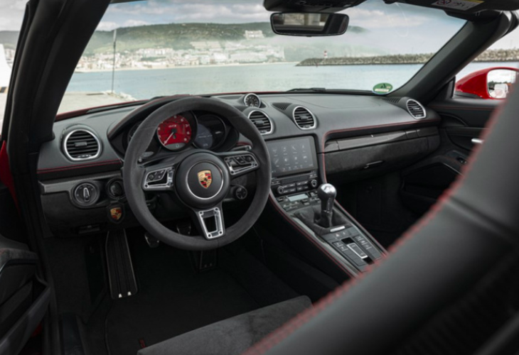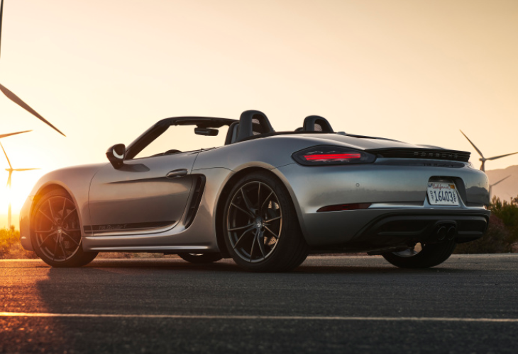 接着我们来看看保时捷718,这款车搭载了2.0T和2.5T水平对置发动机,动力调教比宝马Z4要丰富。2.0T低功率发动机最大马力为250匹,峰值扭矩为310牛米,匹配7速双离合变速箱,百公里加速5.6秒,要比宝马Z4快1.1秒,实际体验上的区别还是比较明显的,高功率发动机最大马力为300匹,峰值扭矩为380匹,百公里加速4.9秒。