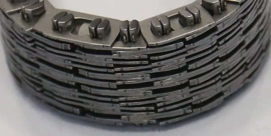 以适用QR019的「钢带」为例,该类「钢带」是由400片左右金属「推片」和多组「钢环」组成,每个「推片」的厚度为 1.4mm左右,单侧「钢环组」由厚度为0.2mm左右的12或9片「钢环」组成。