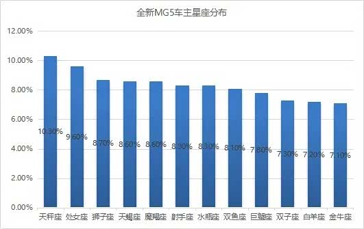 天秤座车主占比为10.3%,是全新MG5的“真爱星座”