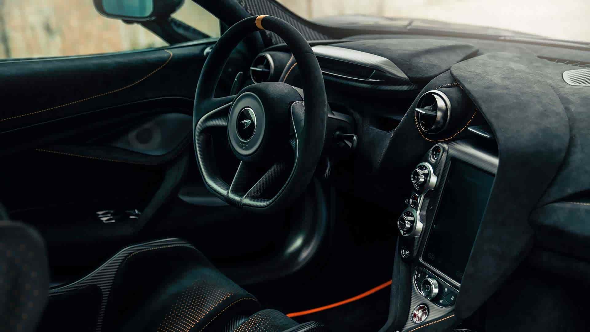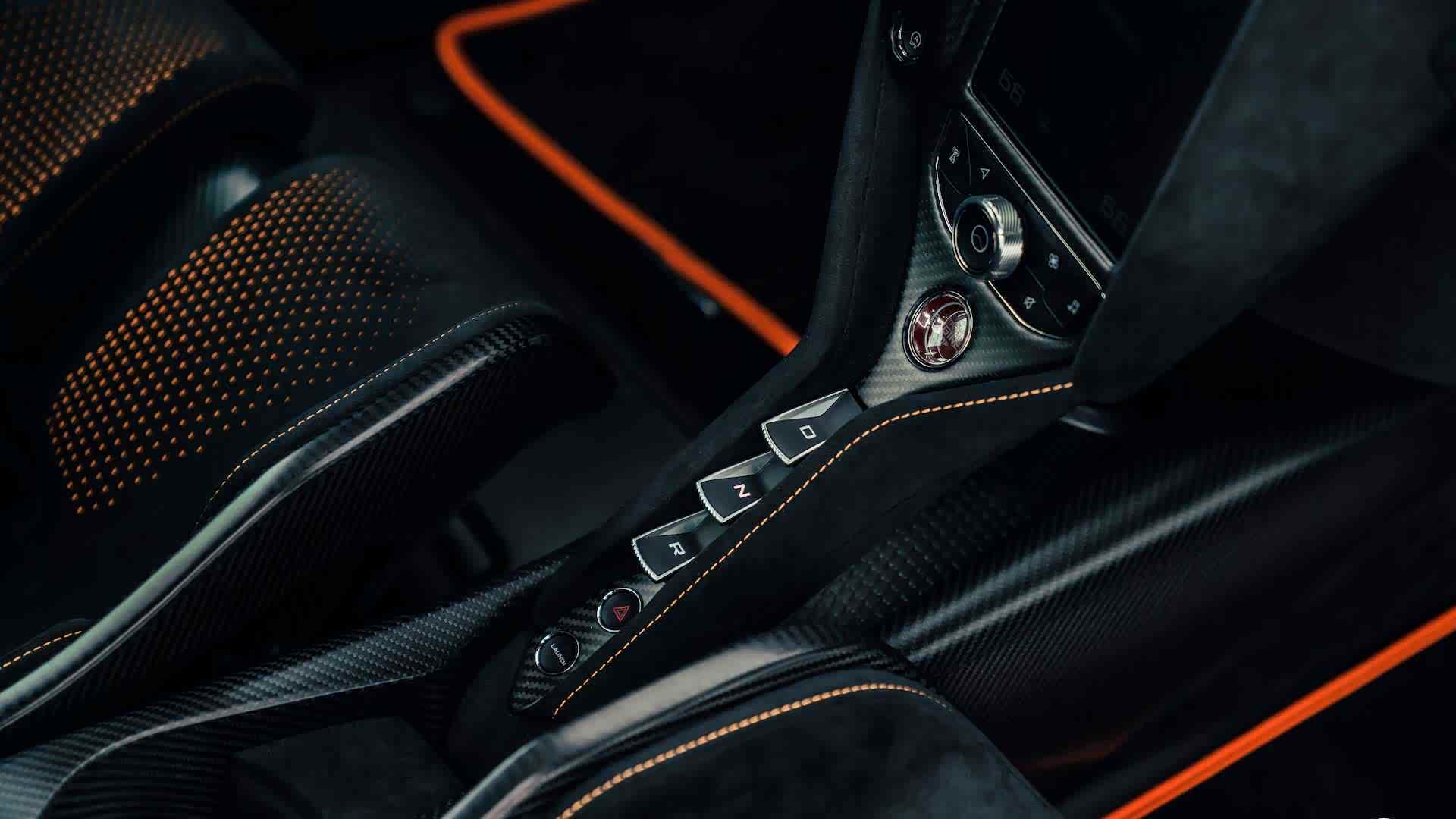 内饰方面,可以看出这台车延续了迈凯伦家的家族式设计,很有迈凯伦风!方向盘、中控、座椅以及门板都使用了大量的碳纤维和Alcantara材料主要是为了有更好的摩擦力以及触感,座椅可以看出包裹性非常好。
