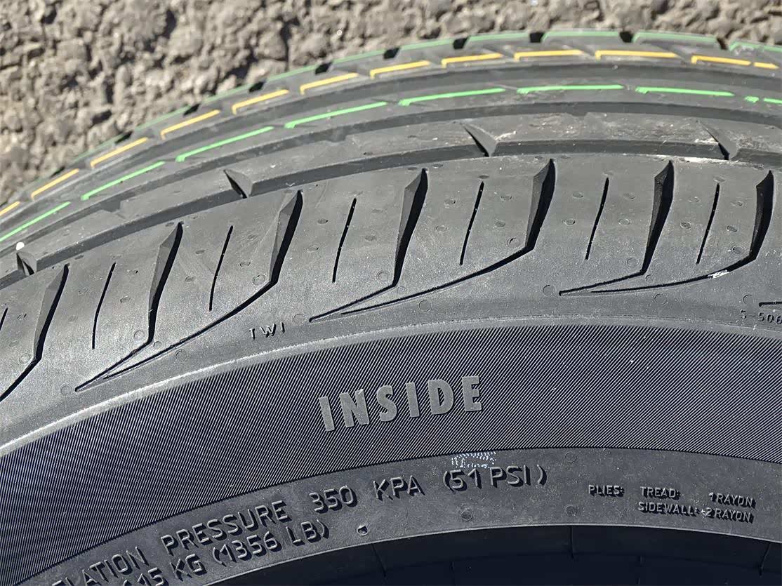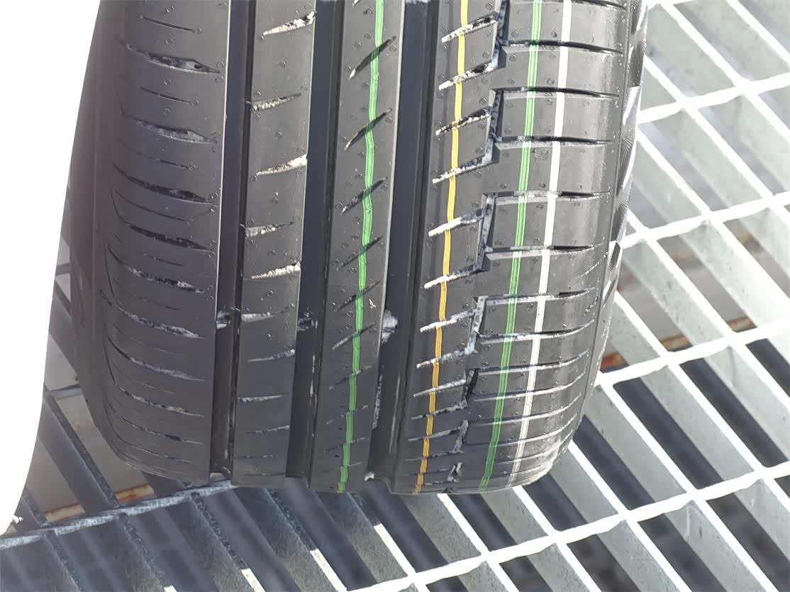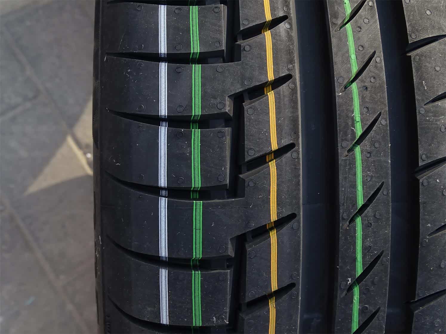 胎肩的大复合花纹块结构能够有效控制横向力,提升过弯时的稳定性和安全性。此外,花纹设计有特殊角度的沟槽开口,使花纹块的刚性大大提高,减少胎块变形,而在过弯时展现出更出色的抓地力。同时沟槽的开口也可以刮除积水路面的水膜,实现更出色的湿地抓地力,避免水漂的发生。如此的花纹设计比上一代的弯道操控性能有了很大提高,带来了更快的过弯车速,也带来了更激情的驾驭。