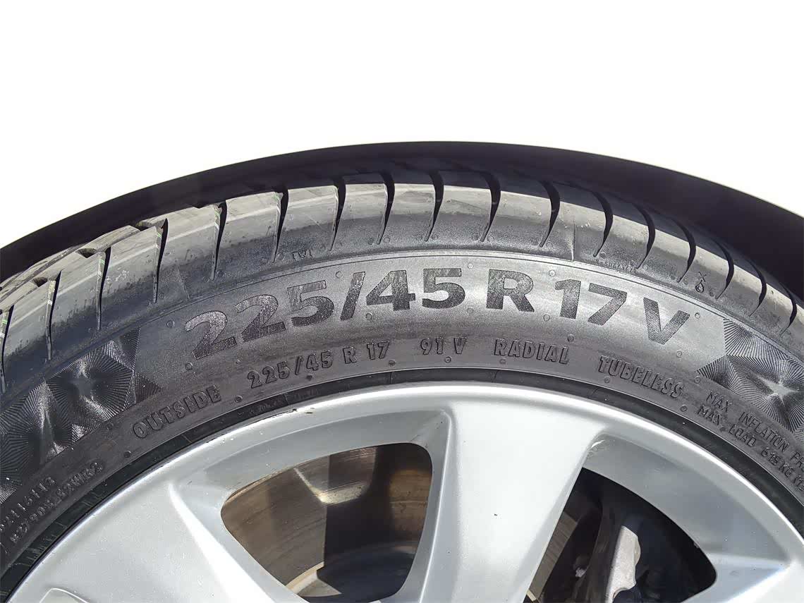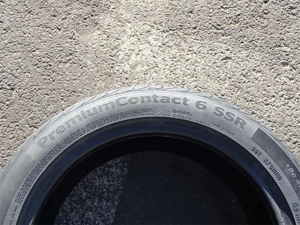 资料显示,德国马牌PremiumContact™ 6在性能上与主打运动的德国马牌ContiSportContact™ 5(CSC5)相比,干地和湿地刹车性能持平,操控性提升3%,滚动阻力降低5%,行驶里程提升15%,车外噪声下降10%,带来了更出色的全方位性能。我们测试的一些数据显示,它的胎面硬度是75,胎壁硬度是58,主沟槽深度是6.93mm。这款225/45 R17 91V FR SSR的最高车速是240km/h,每条轮胎的最大承载负荷是615kg。