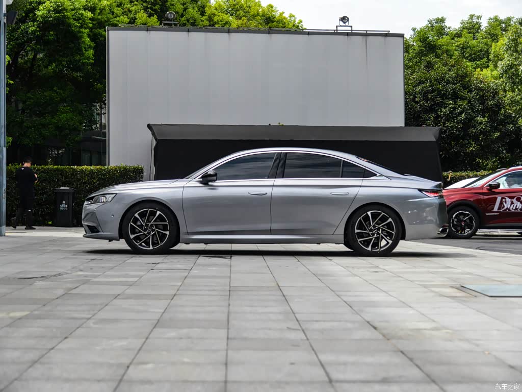 车身侧面,DS 9平直的高腰线,从前大灯组一直贯穿到后尾灯处,动感的车身姿态搭配着隐藏式车门把手的使用,让整个车侧更具年轻时尚感。