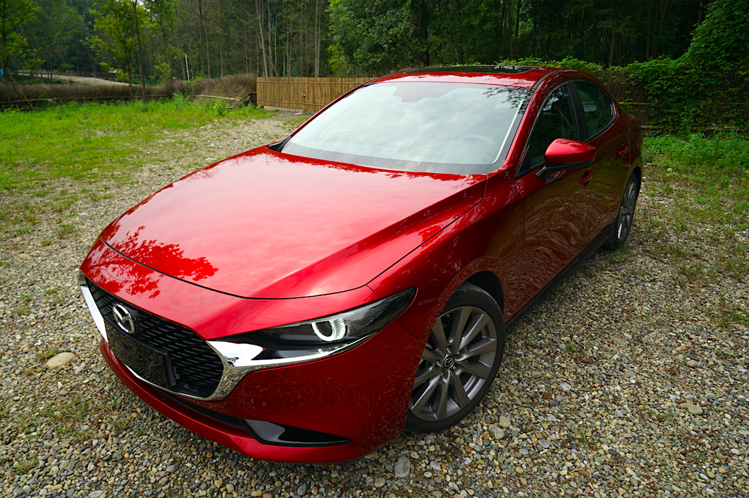 我敢说,买马自达3 昂克赛拉这款车的人有90%的就是冲着外观去的,它没有领克03那样在外观上用很多装饰性的部件去刻意的营造出运动观感,环顾马自达3 昂克赛拉一周,你很难发现明眼的直线,尤其是在光线的射影下,各种亮眼的镜面效果,加上魂动红的车漆,让人不能自已。