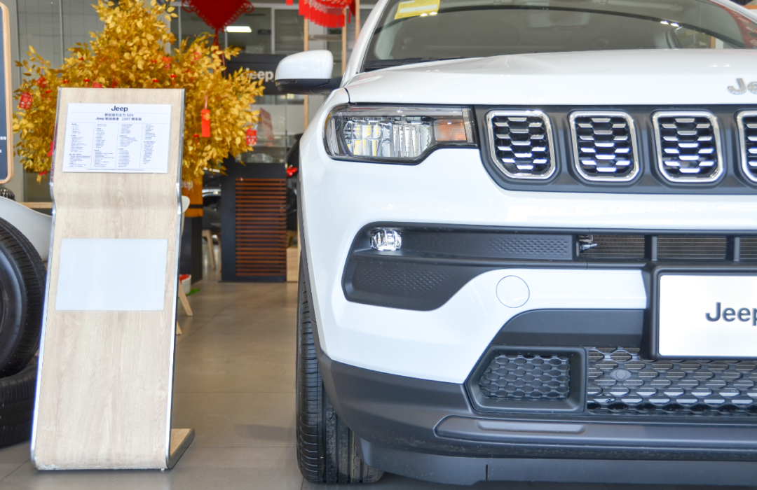 在上海越也经销商店,Jeep新指南者被摆放在一进门的位置,十分醒目。本次实拍车型为Jeep新指南者 220T精英版。