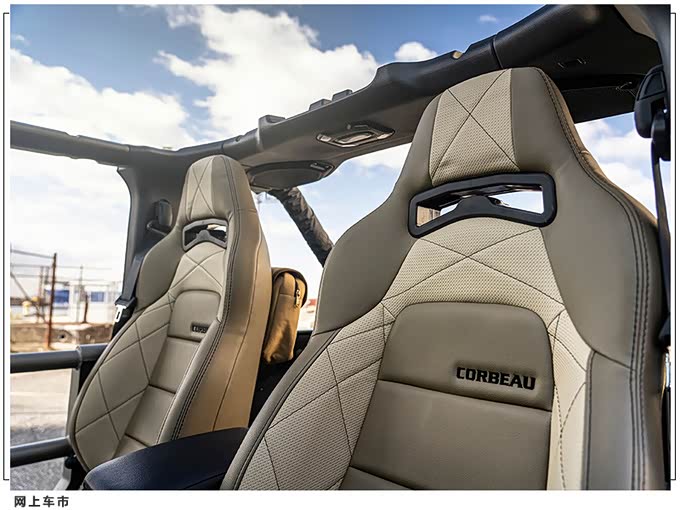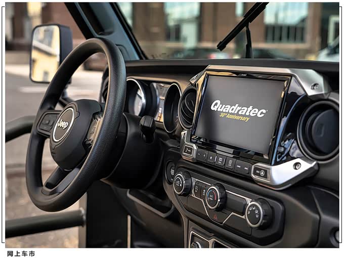 外观上,该车采用了YJ款车型的方头灯和后杠等经典设计元素,并且配备了Teraflex RT4底盘升高套件,Falcon可调高性能避震器,以及自家售卖的Quadratec CJ Retro轮毂和尺寸更大的越野轮胎。车侧还换装了管状车门以及全新设计的挡泥板造型。车内配有皮织混搭的Corbeau Trailcat座椅,可实时显示胎压的九英寸Alpine触摸屏和最新的信息娱乐系统。据悉,该车仅作为纪念版车型生产一台,但该车的大部分改装件在Quadratec公司的官网上均有销售。