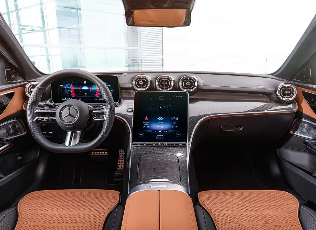 在内饰方面,新一代的C级使用了和新S级类似的内饰布局,悬浮式的全液晶仪表和中控屏非常显眼。不过就从设计的角度和我的审美来说,空调出风口的造型有点让我跳戏,如果使用和特斯拉类似的隐藏式出风口会不会和这一代的内饰更搭呢?在车机系统方面,这一代的C级也搭载了奔驰第二代的MBUX系统,预计将有着不错的人车交互体验。这块中控屏的尺寸在中高配车型上为11.9英寸,在低配车型上尺寸更小,下方则使用了实体按键来控制空调。不过我就想知道,这块大屏幕沾满指纹会变成什么样。