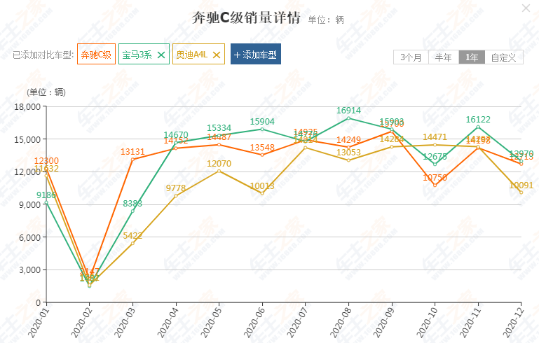 目前在豪华车行列,奔驰、宝马、奥迪一直都是你追我赶,尤其是定位中型车的“34C”。从车主之家提供的数据不难看出,三款车型的销售也非常接近。