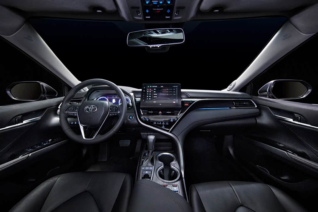全新凯美瑞的车内空间兼具科技感与舒适性。中控显示屏升级为10.1英寸智能语音导航显示屏;新搭载的12.3英寸全液晶彩色TFT多功能信息显示屏,采用直观且易用的HMI人机界面,驾驶员可根据喜好自由切换模拟显示和数字显示。不同的驾驶模式显示不同的色调:NORMAL模式为蓝色系,ECO模式为绿色系,SPORT模式为红色系。