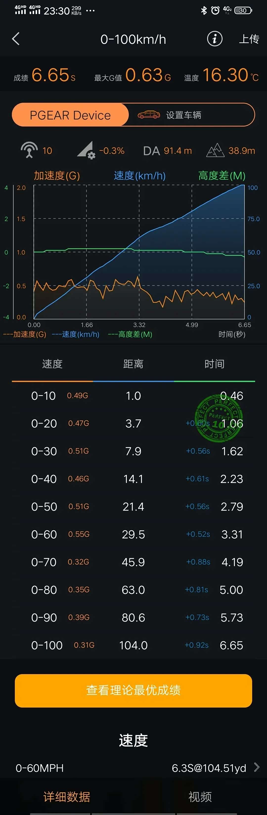 接下来我们来看看一阶段加的MG6当时测试的最好成绩。