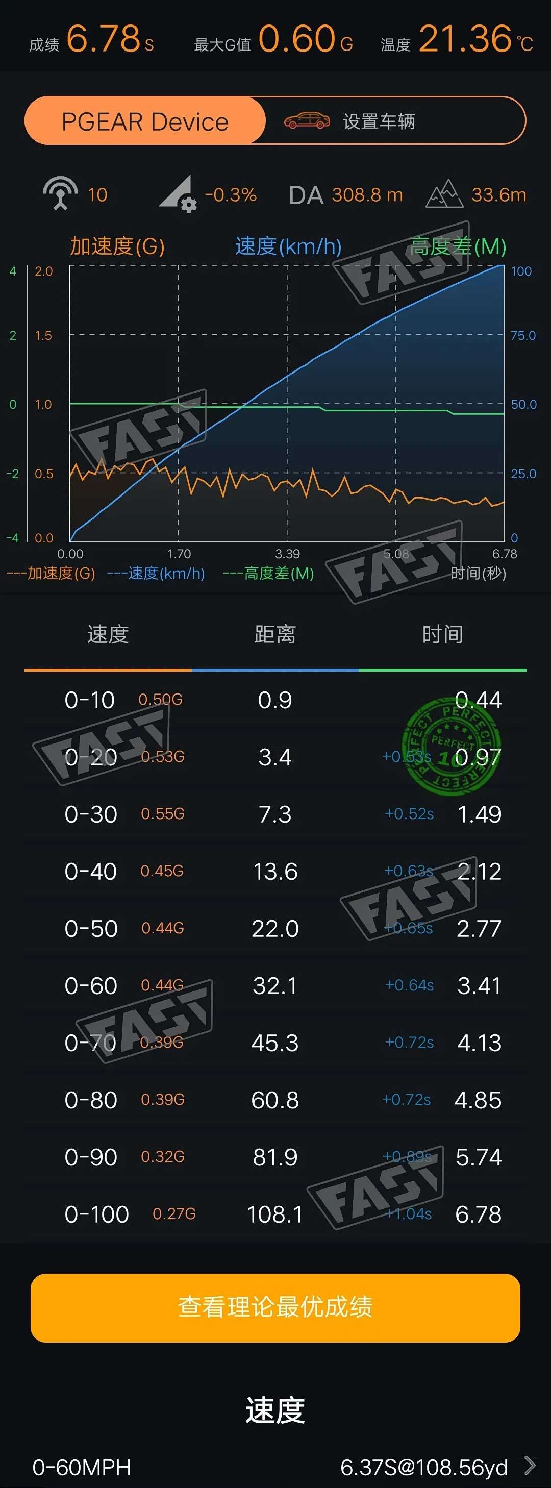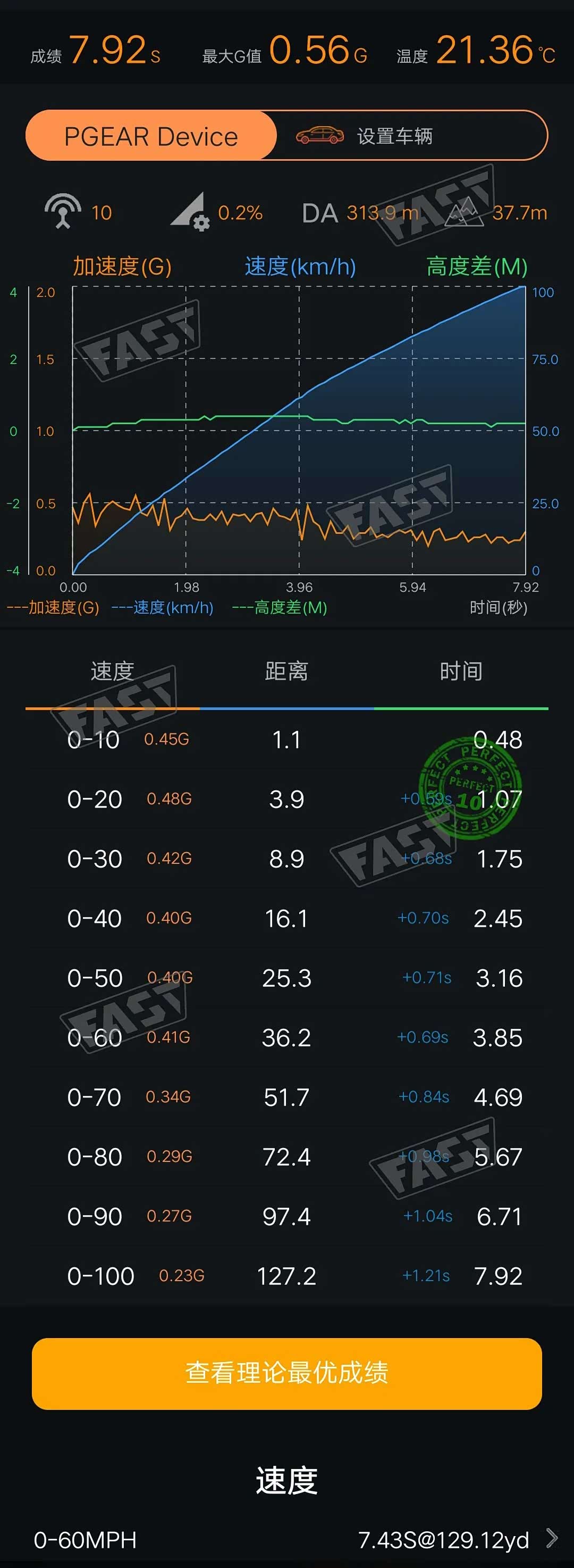 测试完一阶段的马力,接下来我们进行的就是零百加速测试,从马力曲线分析的确是有很大的提升,那么零百加速测试是否也是有明显提升?