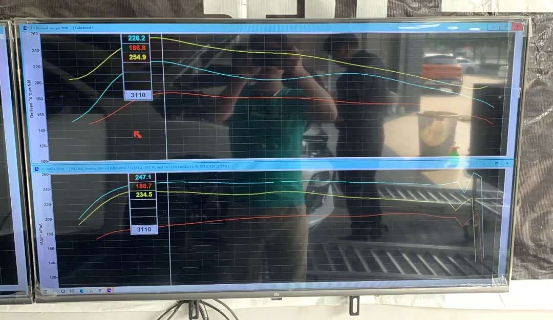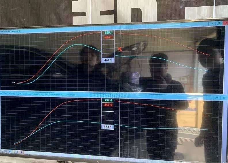 原厂对比调教涡轮压力又调教点火提前角的轮上数据对比图