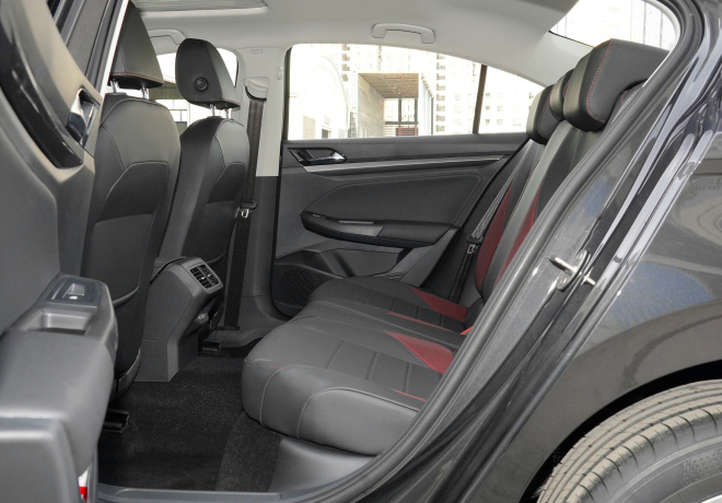 宝来的轴距为2688mm,在同级车型中不算长,但是大众营造空间的能力较强,我本人身高1.8米,坐进后排还是比较宽松,膝盖距离前排靠背有一拳半的距离,可以找到一个比较合适的坐姿,但是这个大空间的来源之一,是削薄了座椅的厚度,所以座椅本身的舒适性一般,后排靠背比较平直缺少腰部支撑,乘坐2小时左右就有腰酸的感觉,需要下车活动活动。