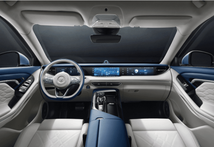 进入到车内之中,整个车内的设计再次让小编感觉到惊喜,因为它的驾驶舱部分十分高级,采用的是三联屏的设计,瞬间就提升了不少的科技气息。最令小编觉得惊喜的是,这款车的屏幕还带有升降功能,也就是说当车门解锁的时候,屏幕可以自动上升,具有加热功能的方向盘和鼠标造型的电子档杆,也带来了比较强的实用性。
