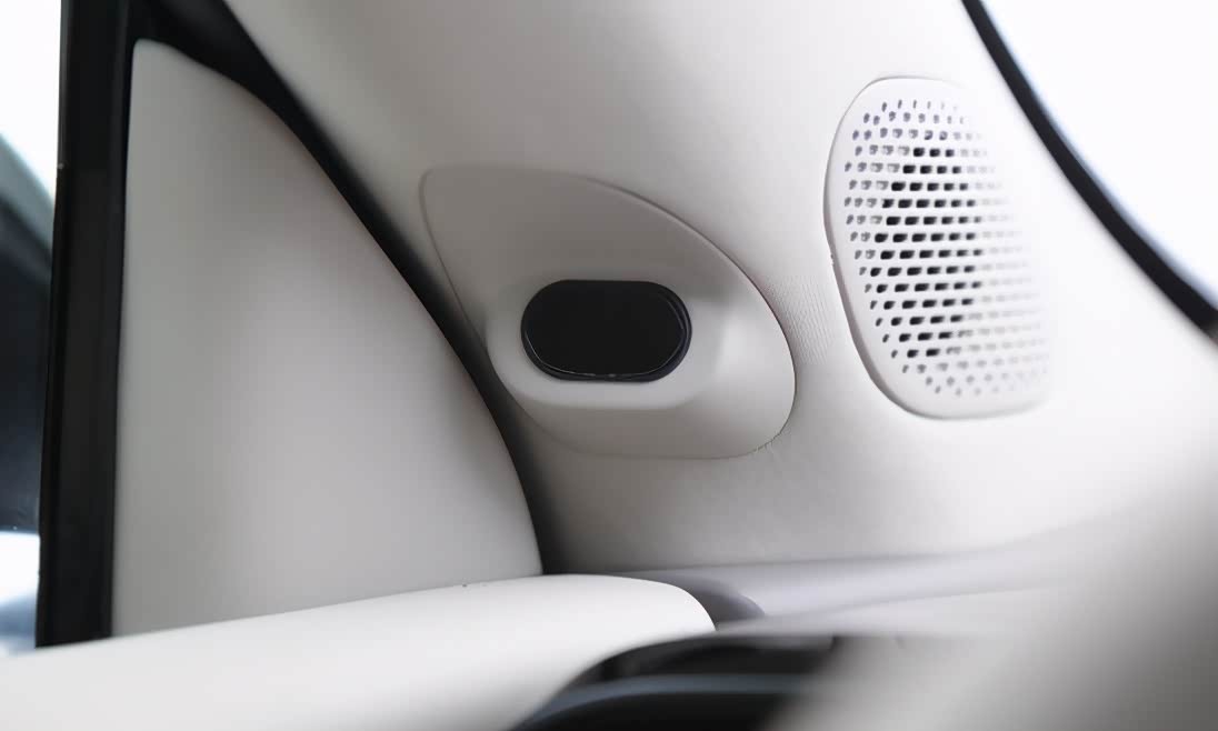 再带大家来看看细节方面的设计。车内搭载了人脸识别摄像头,还带有疲劳检测功能,同时也具备人脸ID自动适配功能,可实现外后视镜、座椅记忆、空调、驾驶模式的自动识别与适配,未来可升级拓展如音乐歌单、氛围灯等适配记忆功能,十分方便。