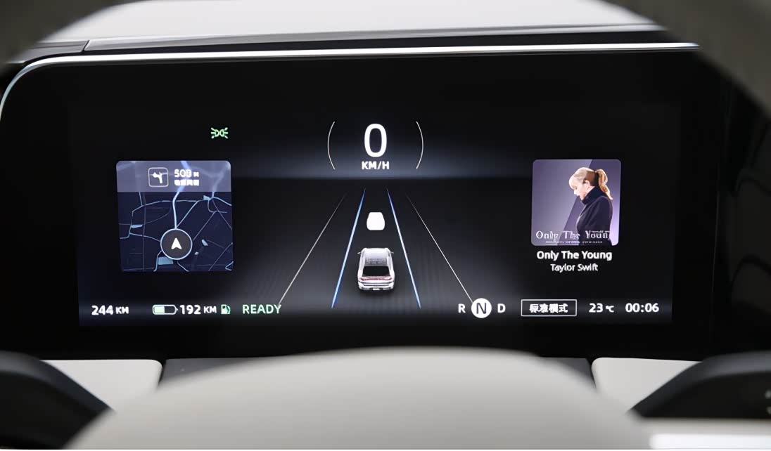 接着咱们重点带大家来看看零跑C11的这三块大屏。仪表盘是一块10.25寸的全液晶屏幕,据官方信息,其分辨率达到1920*720,显示比较清晰。