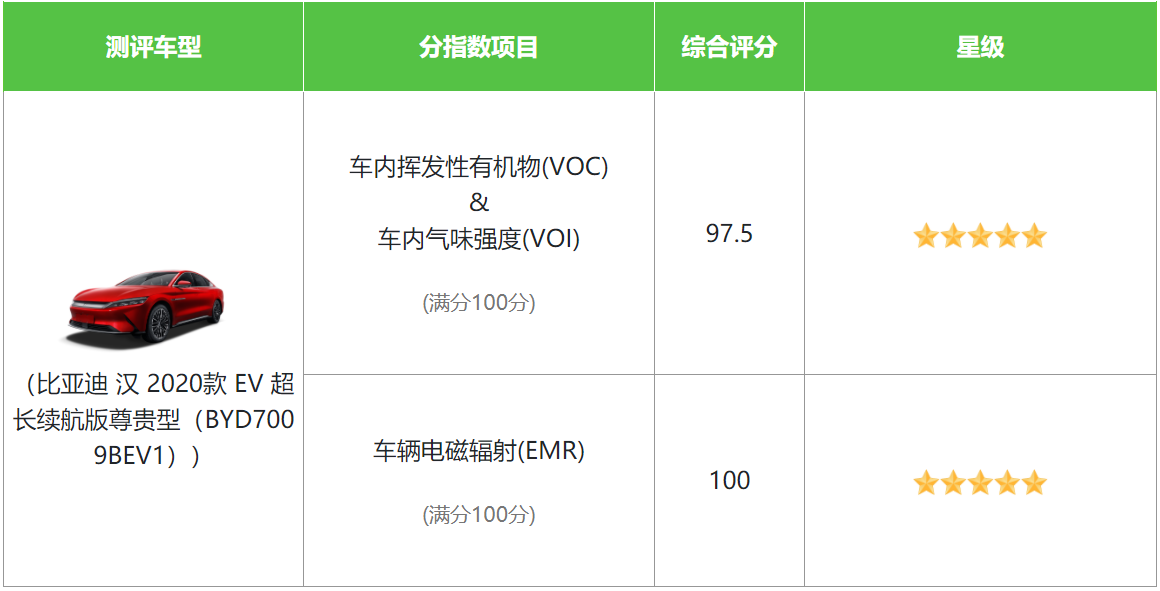 中国汽研权威鉴证,汉EV VOC&VOI全项指数第一