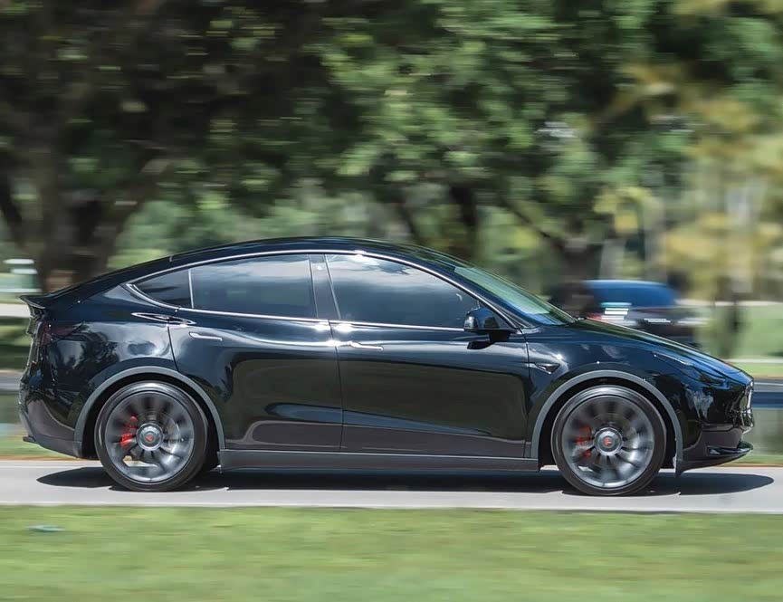 新车侧面看过去更像Model X的缩小版,跨界风格的身形比较独特,隐藏式门把手体现了电动车该有的科技感,而且大尺寸枪灰色轮圈颇具性能范儿。车顶溜背的线条比较流畅,尾灯组造型同样和Model 3如出一辙,只不过尾部的视觉重心更高。车身尺寸方面,新车长宽高分别为4750/1921/1624mm,轴距为2890mm。