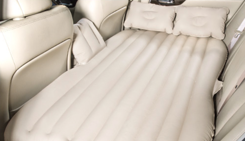车载充气床它一头高,一头低,放在后座上刚好放平,别名车震床。它在不用时可以放气收起,所以也不会占用空间。
