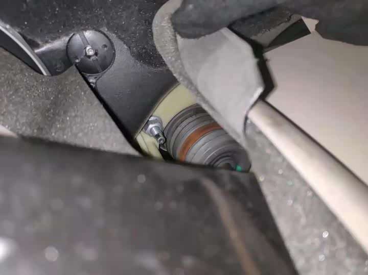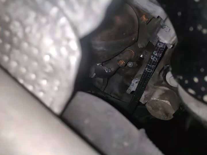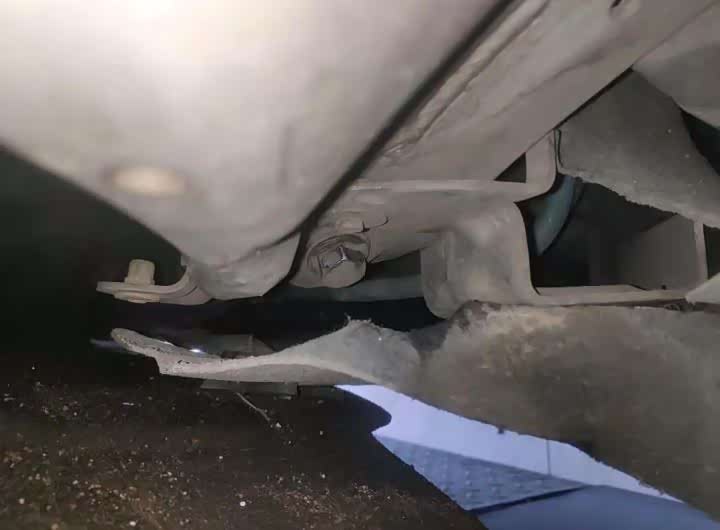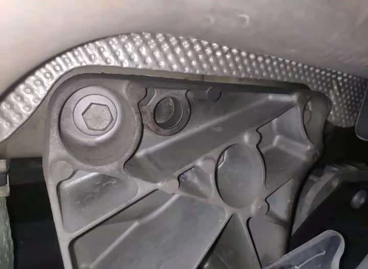 发动机底部元宝梁固定螺丝拆了,但元宝梁胶套并没有更换,宝马更换发动机机脚是必须拆元宝梁的,否则无法进行操作。