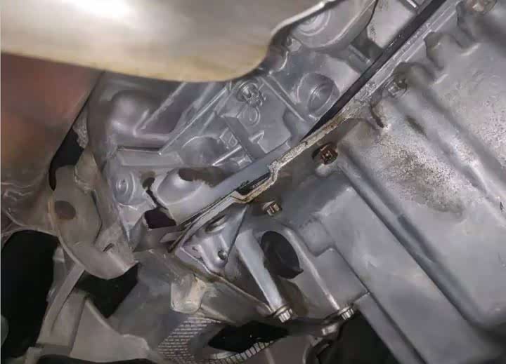 发动机变速箱并没有分离,发变主体也没有拆卸分解维修,仅是发动机油底壳有过拆卸,目前还存在渗油的现象,对于十年车龄的宝马来说,这么一点渗油已经很好了,后期更换发动机油底壳垫就可以搞定。