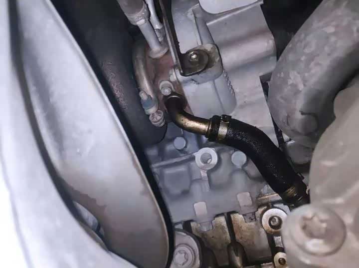 从底盘观察涡轮增压器发现油管存在渗油的情况,不过问题不大,后期更换油管就可以解决。