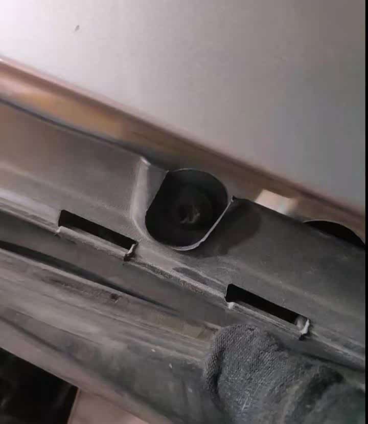 撬开叶子板内部压条,观察固定螺丝发现螺丝动过了,而且是双向受力,不只是单单的紧固,看来叶子板也更换了。