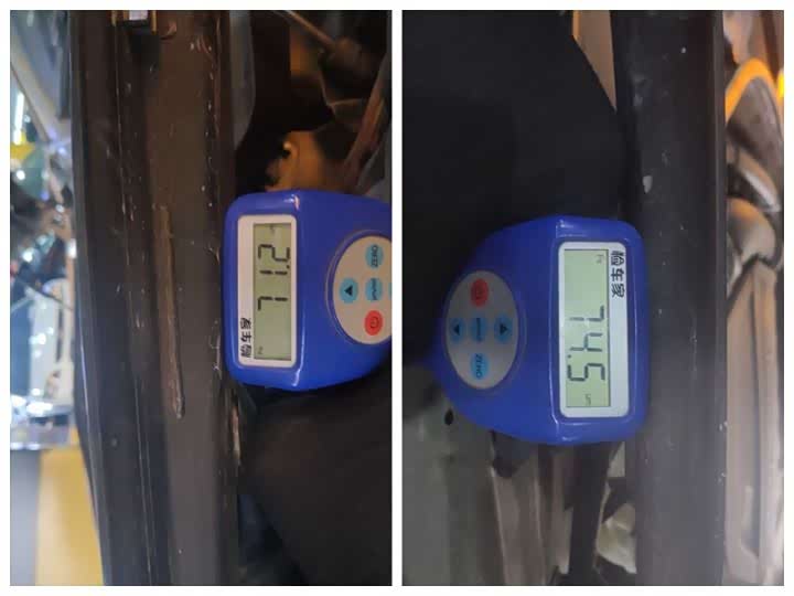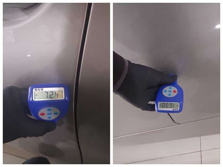 有的朋友就看不懂了,这两个部位都更换了配件,为什么一个车漆厚度偏高,而另一个车漆厚度偏低呢?瑶瑶在这里解释一下,车漆厚度偏高有可能是换件之后多次喷漆的结果,也有可能是更换的拆车件,而拆车件的颜色可能不一致就需要再次喷漆改色,车漆厚度就高了上去;而车漆厚度偏低则说明换的是新配件,新配件一般是没有颜色的,需要喷涂颜色上去,而外面的修理厂包括4S店都比原厂少了一道电泳层的工序,所以新配件的漆面厚度都偏低。判断配件更换与否,需要外部与内部综合来看,不只是单纯看漆面就可以下结论的。
