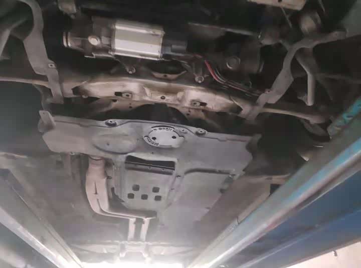 顺路将车开到事先约好的修理厂上架检查底盘。车辆缓慢升起来之后,打眼望去底盘非常规整,没有严重的拖底和漏油现象。前双叉臂后多连杆的悬挂配备,兼顾了行驶质感和乘坐舒适度。