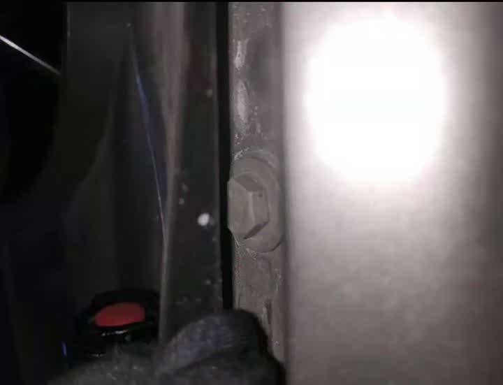 透过缝隙观察前保险杠支架固定螺丝有拆卸痕迹,综合目前的情况来判断,更换的可能性极大。
