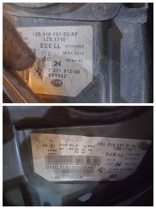 两前大灯的制造日期分别为2012年和2017年,都晚于车辆总装出厂时间,后期更换的无疑。