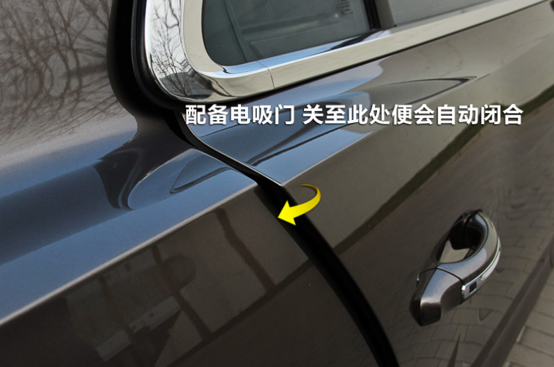 电吸门是豪华轿车的一项舒适安全配置,当车门未关好接近闭合的情况下,车门会自动吸合直到完全关闭。这样关闭车门时就不用很大力,遇到双手被占用只能靠肩膀或身体关门时无需发力,轻靠车门即可。如果车门没有完全关闭会增加危险性,有了这项功能就不必担心,并且关门动作可以更优雅。