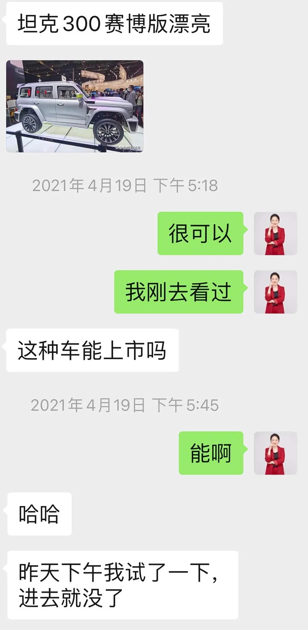 而当我今天早上接到好朋友的电话问我,“ 坦克300(参数|询价)能否早点提车”的时候,