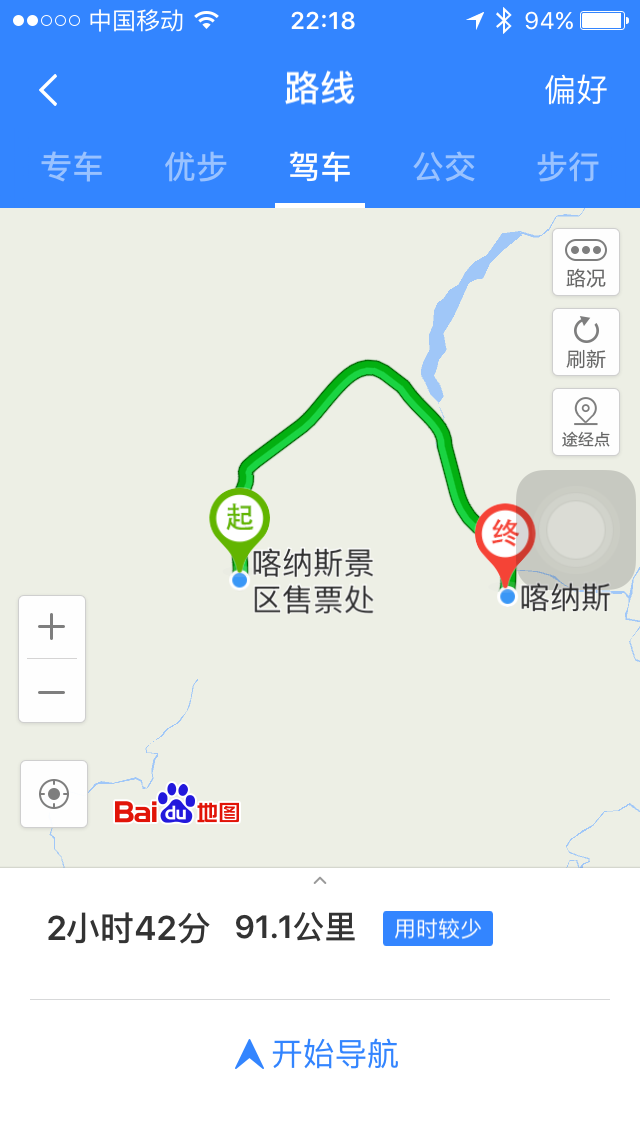 状况二和导航有关,一路开到新疆,一直在使用百度地图,感觉还不错,从克拉玛依到喀纳斯的路依然使用百度地图,搜索地址是喀纳斯景区售票处,结果导航带着我走错了地方,走到了白哈巴村方向,到了百度地图认为的喀纳斯景区售票处,值班的武警说我们到了喀纳斯的后山,中间隔着白哈巴村,说有不少人导航错了,到了这个位置。