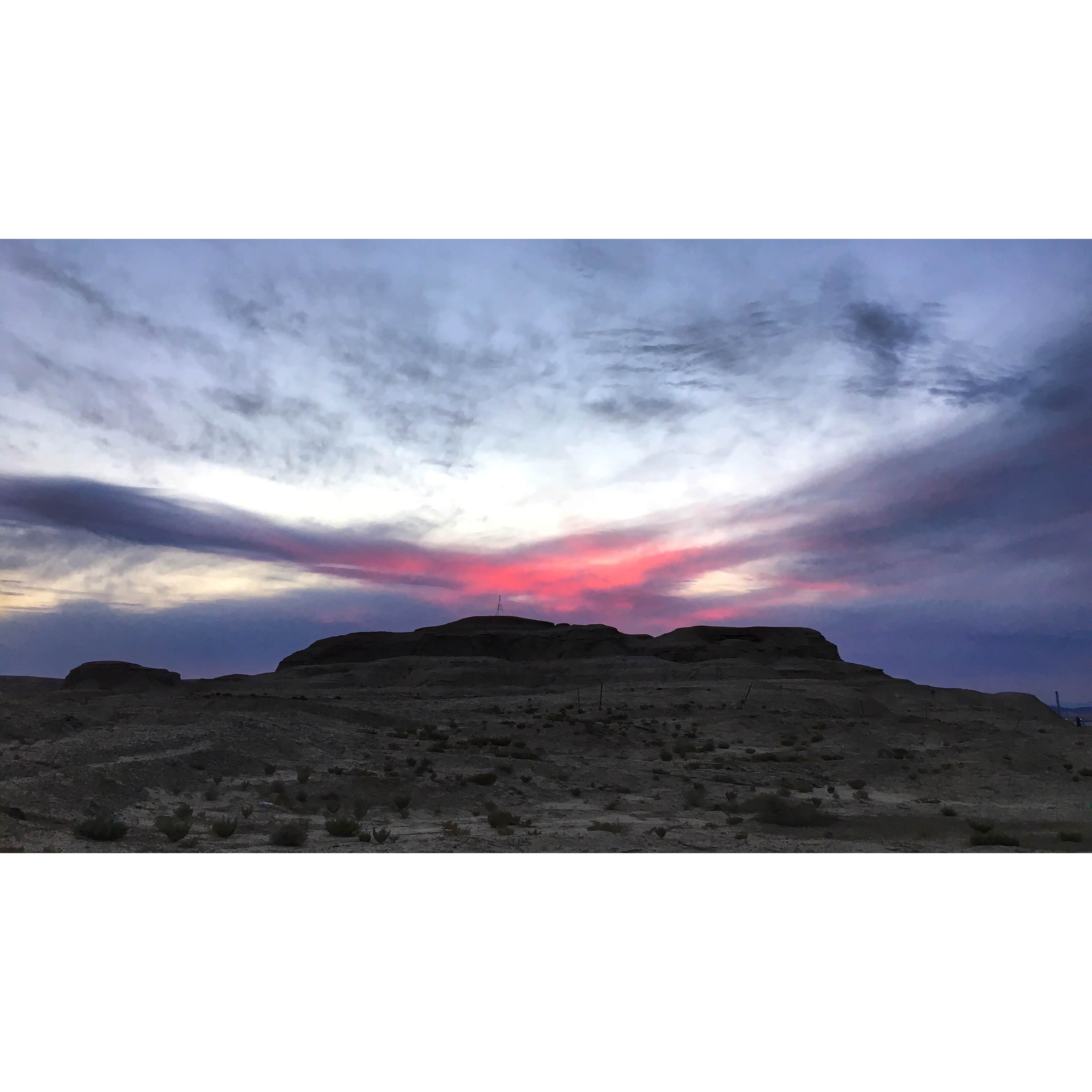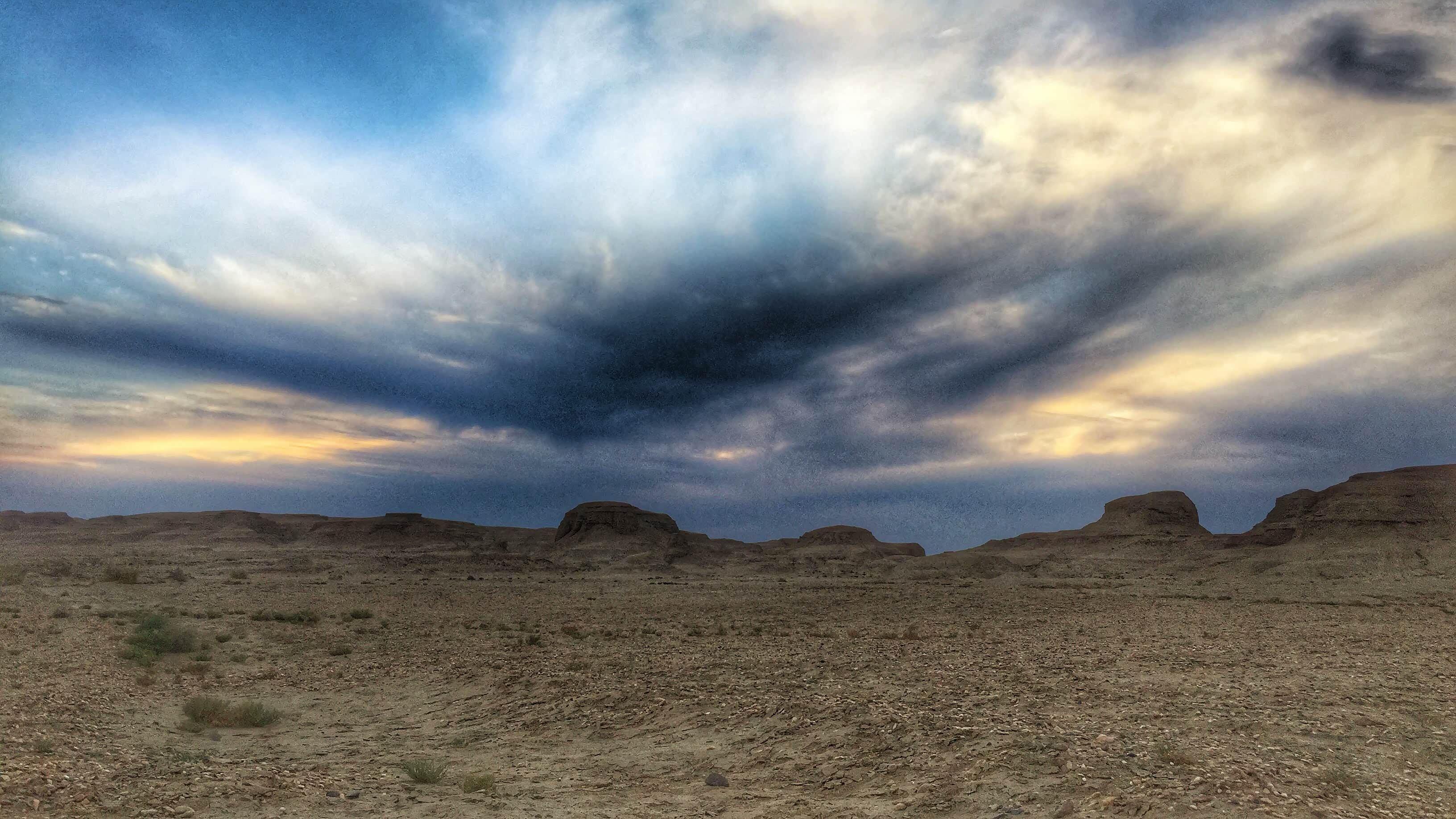 位于克拉玛依附近的乌尔禾魔鬼城值得一去,在落日前,开车从克拉玛依到达那里,按照当地朋友的指引,没有开车从景区大门进去,开车过了景区后有一条油田公路,从这条路右转,开车可以进入到魔鬼城深处,这段路由于油田重车碾压,尘土非常厚,但是能开车到魔鬼城深处看壮美落日,的确很值。