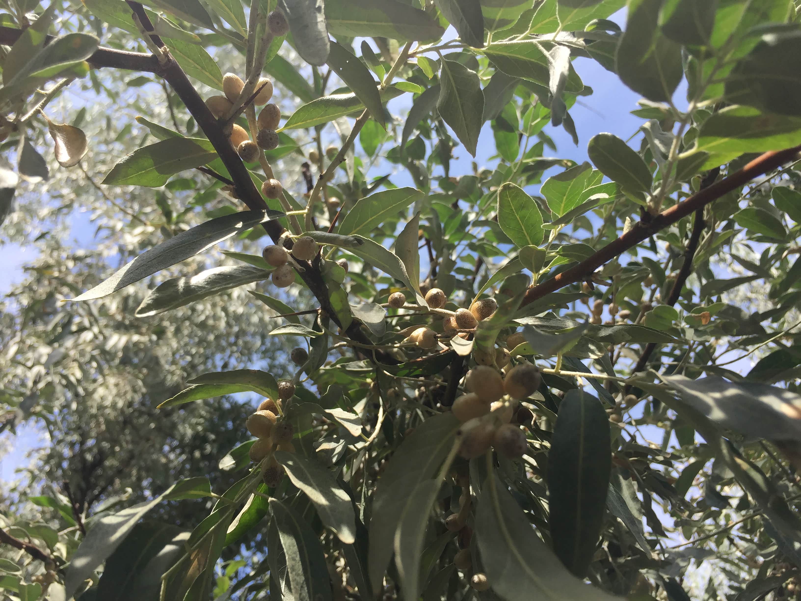 陪着父母在石河子用四天的时间找寻了过去的故事,在新疆这片壮美的土地上生活这么久,当退休回到内地时,新疆最美的喀纳斯还没有去过,最后决定带着父母先去克拉玛依拜访老战友,然后再向北去喀纳斯。石河子到克拉玛依有两条路线可以走,一条是高速公路经奎屯到克拉玛依,这条路距离长60公里,路比较好;另一条路是呼克公路,会走一些省道,这条路是以前的老路,路上限速会比较多。行进到大半时,看见路边成片的沙枣树,回忆起小时候春天沙枣花飘香,秋天沙枣树果实累累的情景,立刻找了岔路行驶下去,陪着父母体会下摘沙枣的乐趣,沙枣已经不是儿时的美味,但是那个味道却清晰的浮现出儿时那种甜味带来的幸福。