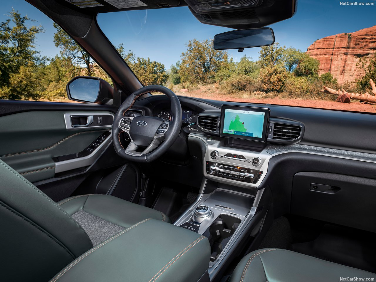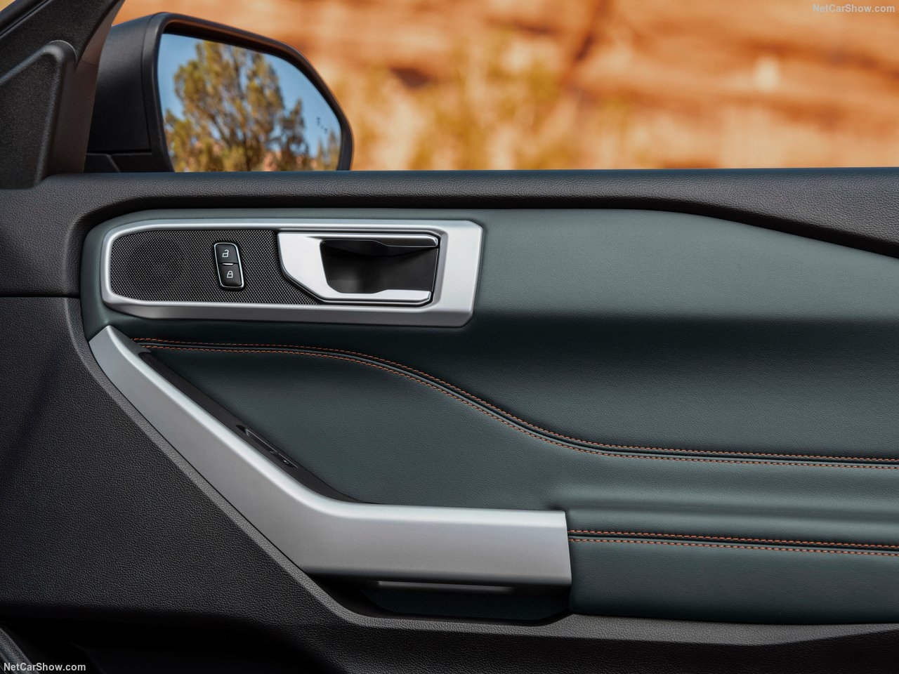 内饰上,新车基本沿用了探险者的造型设计,但在细节方面有所不同。新车取消了现款巨大的中控屏,换搭了更为精致的悬浮式中控屏。从曝光的谍照可以看到,车辆座椅采用了皮织拼接座椅,配有橙色缝线和Timberline标志。