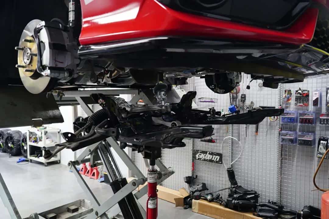 全新CIVIC思域Hatchback的变速箱拆装比较繁琐一些,需要落下原厂的元宝梁又称四方架,才可以抬起来,这可以称得上大工程。