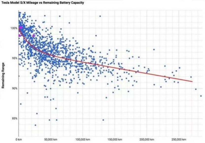 一些卖车的用户也是苦不堪言,不少二手车商在交易的时候很有一套,先是拿着“今年十万买,明年五万卖”的行业规则忽悠大家,还用电池衰减理论砍价,所谓电池衰减理论是这样的:一般来说,动力电池性能的衰减是个长尾曲线,前三年的衰减比较快,随后逐步降低,五年以后,每年电池容量的衰减率通常只有约1%。