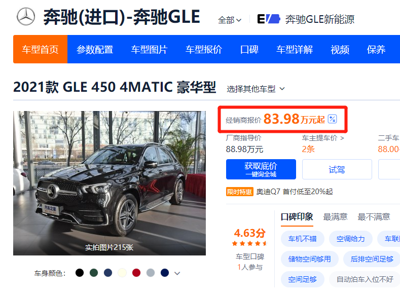 相比目前最新款的奔驰GLE还要贵不少钱,现在GLE新车最贵的型号:2021款 GLE450豪华型也才卖83.98万。