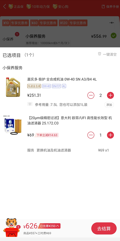 这个车1万公里做一次保养,小保养只换机油机滤,用两桶4L的机油,在X虎保养费用大概600多块钱。如果是做大保养,涉及更换的零配件多,费用大概是3000-5000元或者更高。