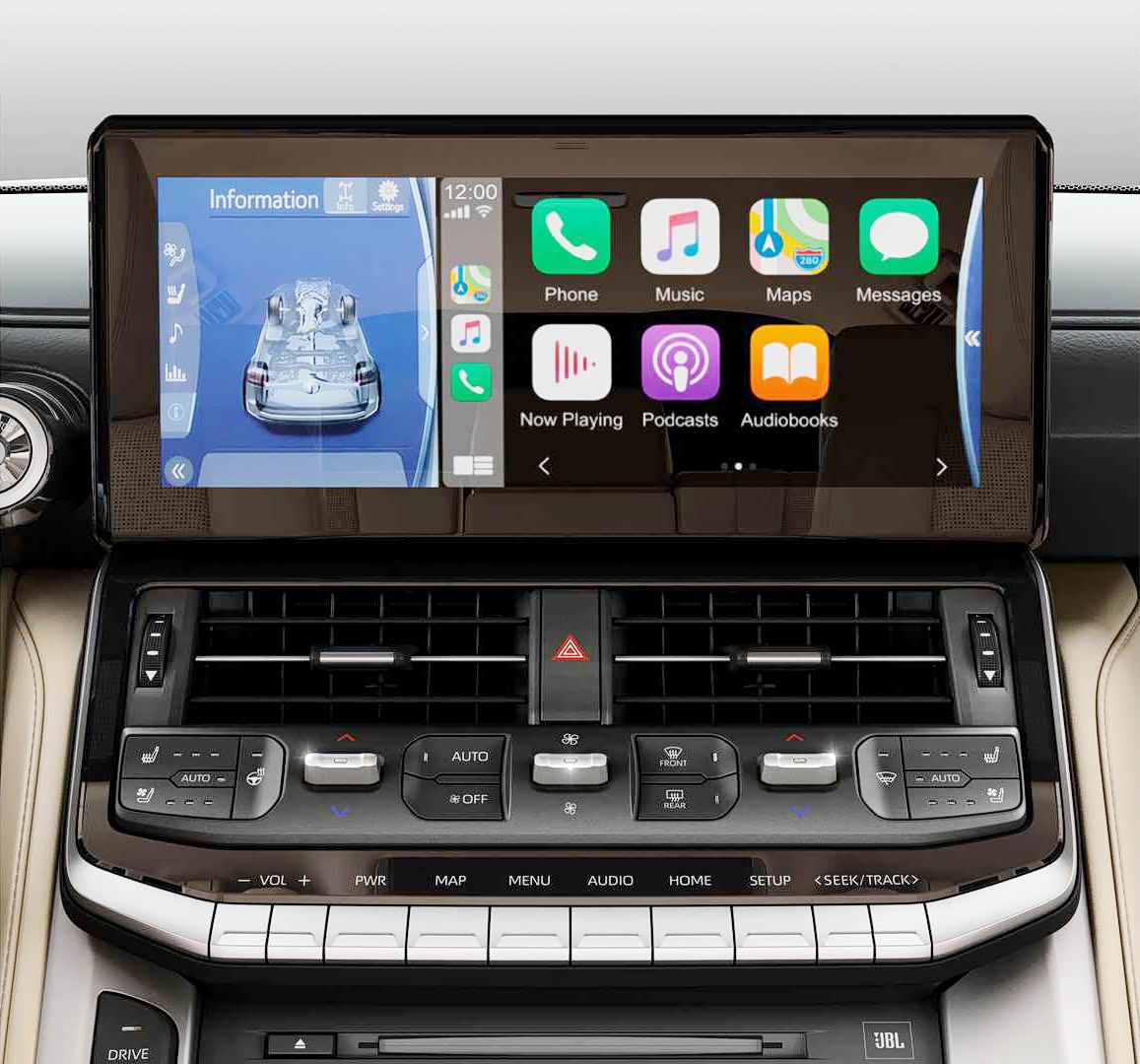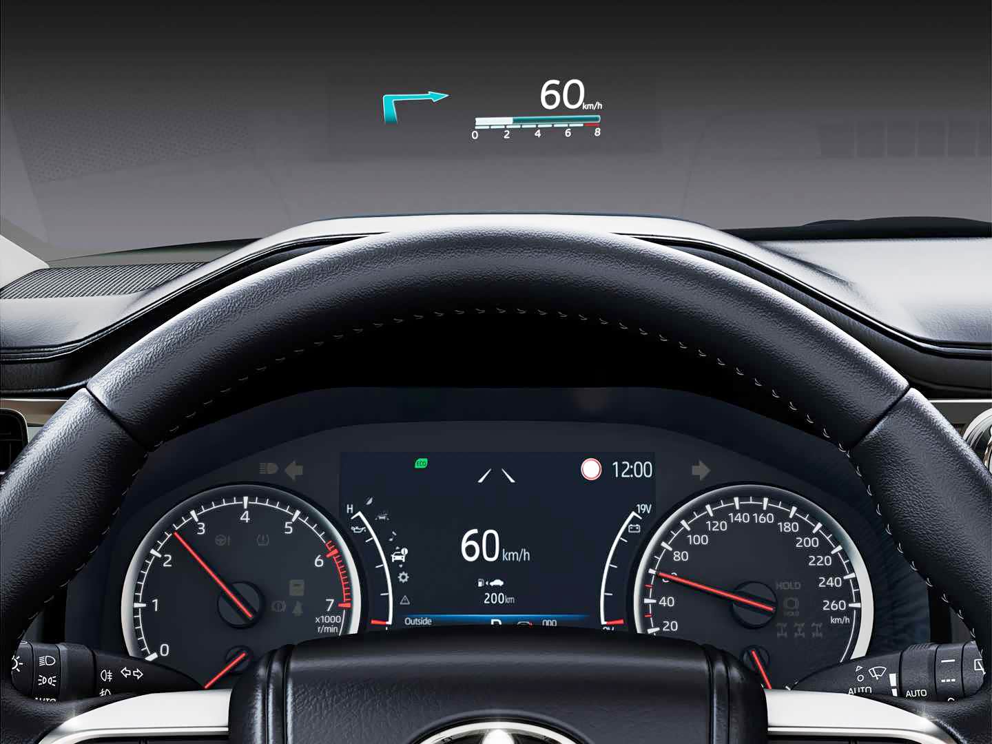 在配置方面,LC300并没有采用全液晶仪表,而是保留了机械的时速和转速表指针,中间则是一个彩色的行车电脑显示屏,这样的设计既能兼顾功能性和实用性,又能保证仪表系统在极端工况下不会失效。此外,全新陆巡高配车型还提供了HUD抬头显示功能,无论是公路行驶还是越野都会有一定帮助。