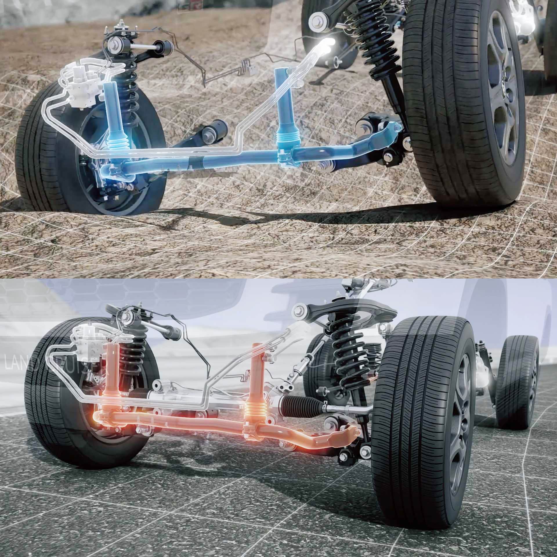 此外,上代车型就有配备的KDSS动态悬架功能在LC300上又得到了进化,变成了E-KDSS。通过与MTS多地形选择功能结合,在不同路面状况下可以通过电控系统调整防倾杆的阻尼:越野时让防倾杆阻尼更小,从而提升悬架的行程;在公路行驶时让防倾杆阻尼更大,来提升车辆过弯时的支撑性。