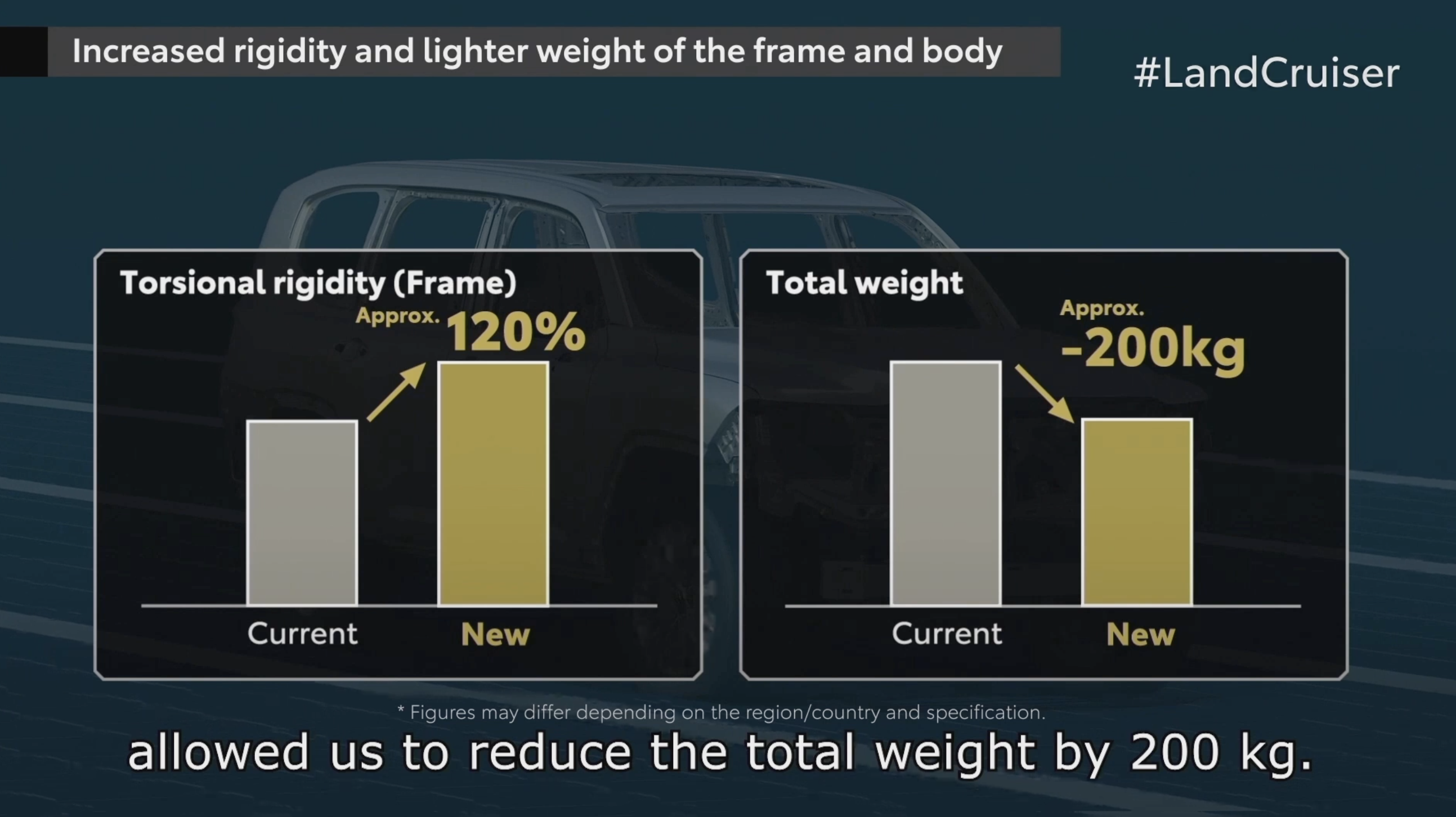按照官方数据,全新陆巡的车身刚性提升了20%,同时得益于结构设计的优化,以及更多轻量化材料的运用,整车的重量反而降低了足足200kg,回归到了20年前LC100的车重水平!对于车辆的油耗、动力、驾驶感受都有明显的帮助。