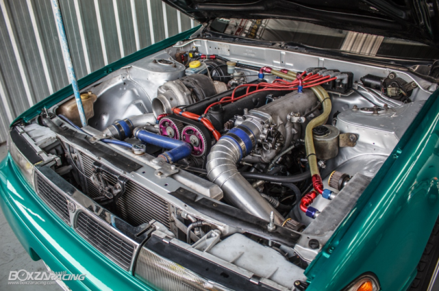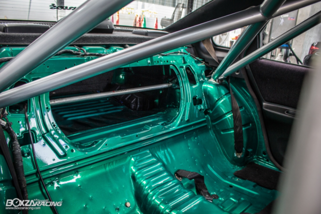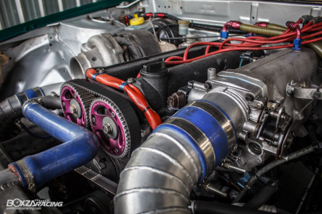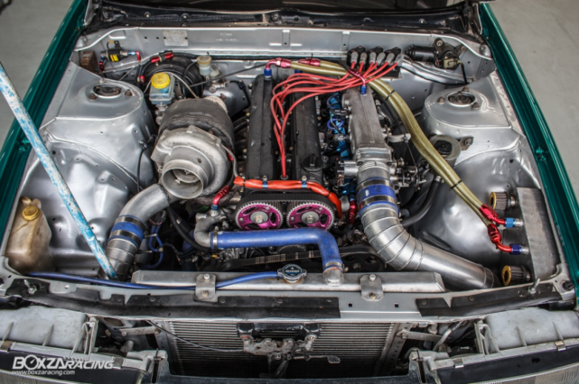 至于为啥要废除原本的日产四缸机而移植丰田的2JZ引擎理由就不用多说了吧?以引擎为核心去反造一辆车,这个方式在高阶性能改装的世界里非常常见。使用什么车,只是一个躯壳而已,好改的引擎才是有趣的灵魂所在,剩下的就是成本和时间了。