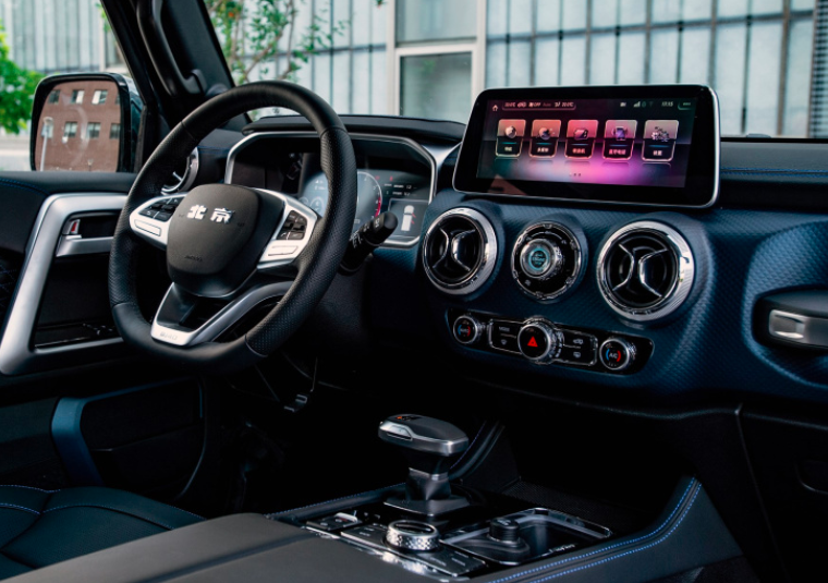 之所以推荐BJ40城市猎人版,除了车主能够带它去越野之外,还要考量到日常使用的舒适性,在配置方面,BJ40城市猎人版配有倒车影像、定速巡航、运动/舒适/节能/雪地四种驾驶模式、自动驻车、上坡辅助、陡坡缓降、无钥匙启动、多功能方向盘、内置行车记录仪、12.3英寸全液晶仪表盘、10英寸触摸液晶屏、GPS导航、手机互联、语音控制、车联网、LED大灯、后排出风口和温度分区控制,整体而言能够保证日常代步的舒适性,后排座椅靠背可以进行调节。
