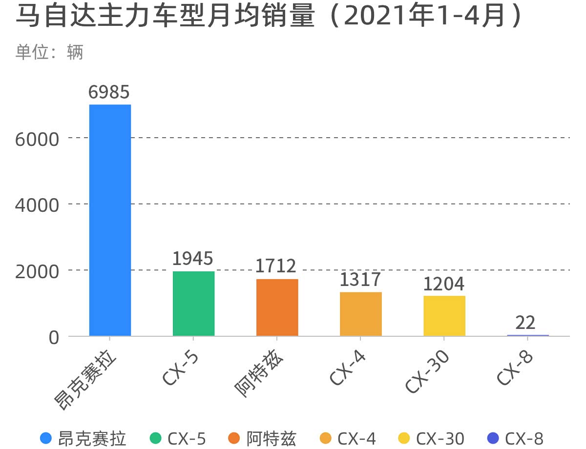 如果说昂克赛拉是任性之选的话,那么马自达剩下的车型就没有什么资本任性了,无论是CX-5还是阿特兹,它们所处级别的用户,大部分都不是追求外形的年轻人了。并且由于它们的价格比昂克赛拉更高,难免会有消费者拿它们与CR-V、RAV4、雅阁、凯美瑞等车型做对比。更重要的是,由于马自达产品换代速度偏慢,除了昂克赛拉以及CX-30外,其它车型都已经比较老了,尤其是CX-5和阿特兹,在国内上市都已经快8年了,外形设计再出挑,也会出现审美疲劳的。