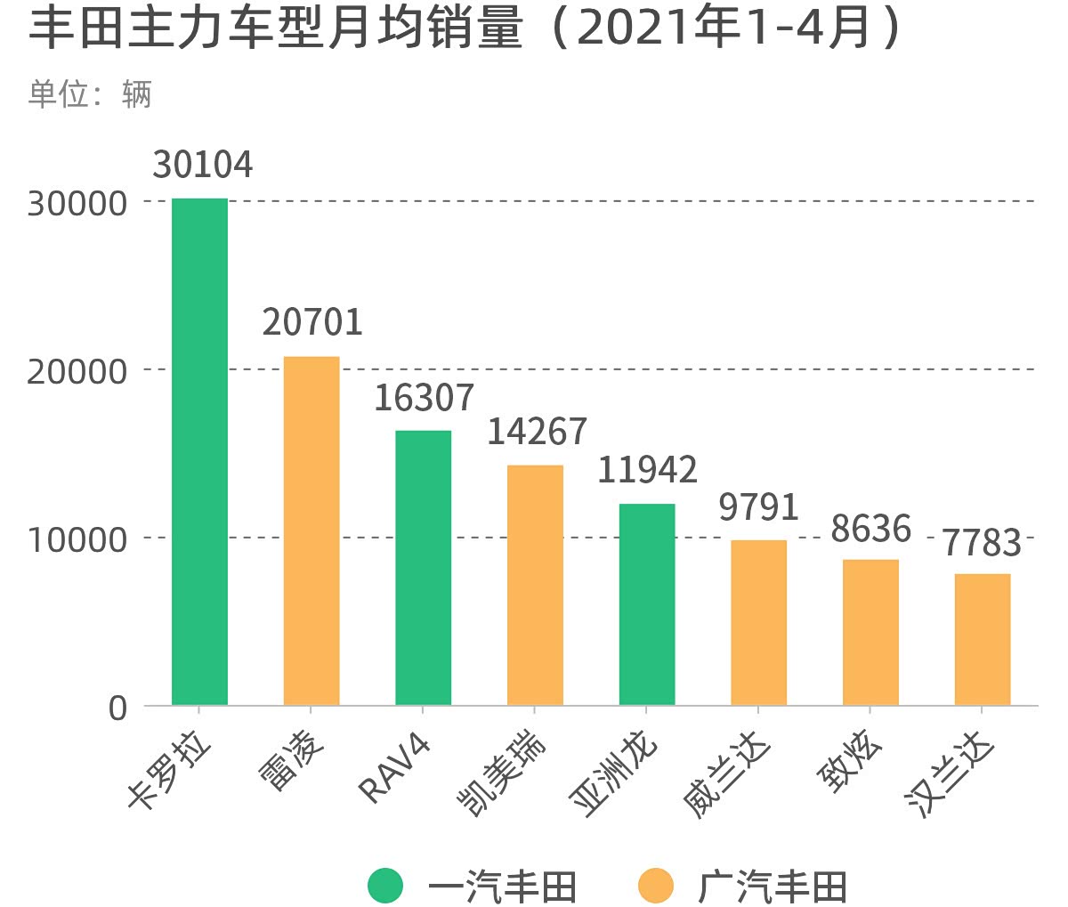 看完各个品牌在日系总销量里的占比,下面我们再通过每个品牌的热销车辆来看看究竟谁才是各日系品牌旗下的挑大梁角色!