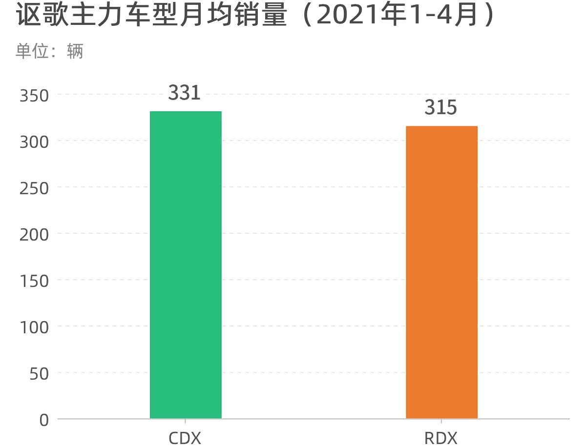 作为国内在售整个日系品牌中最惨的一位,讴歌目前在中国市场仅提供两款车型,也就是CDX和RDX,这两款车的月均销量都在300台出头,如此低迷的销量,实在找不到这个品牌继续在中国市场存在的意义了。