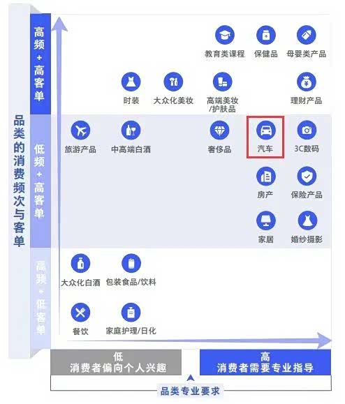 以微信为列,打造汽车品牌的私域运营模式,汽车品类的消费频次与客单价属于“低频、高客单价”;